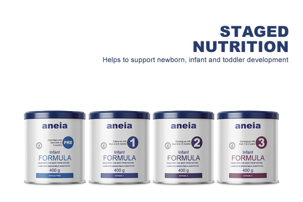 You should feed your baby in the way that’s best for both of you. That’s why Aneia also makes prenatal and breastfeeding supplements, like DHA to support your breastfeeding. If you choose to formula feed, you may choose a gentle formula for newborns, or one designed to complement breastfeeding. If you choose to formula feed exclusively, know that our Aneia Staged Nutrition formulas are inspired by the changing nutrition in breast milk, tailored to your baby’s age and all have brain-nourishing DHA. As a modern mom, you have more ways to confidently feed your child than ever before.